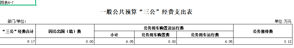12.“三公”經費:納入財政預決算管理的“三公”經費,是指使用財政撥款安排的因公出國(境)費、公務用車購置及運行費和公務接待費。其中,因公出國(境)費反映單位公務出國(境)的國際旅費、國外城市間交通費、住宿費、伙食費、培訓費、公雜費等支出;公務用車購置及運行費反映單位公務用車車輛購置支出(含車輛購置稅)及燃料費、維修費、過路過橋費、保險費、安全獎勵費用等支出;公務接待費反映單位按規定開支的各類公務接待(含外賓接待)支出。