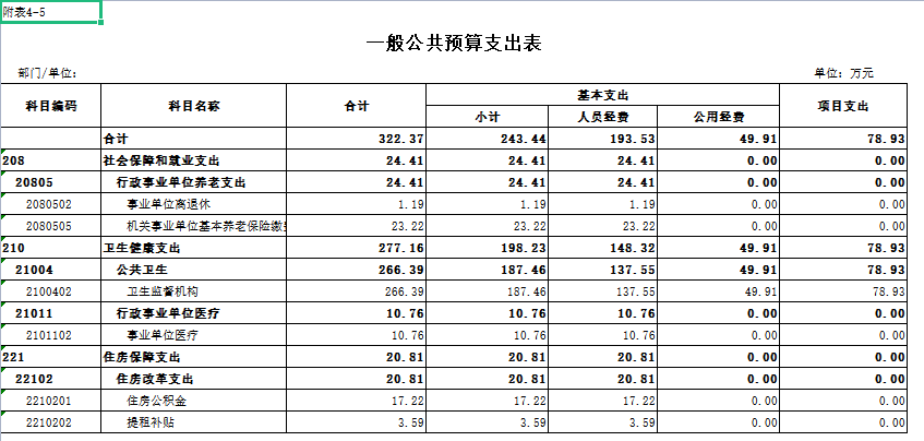 五、一般公共預算支出表