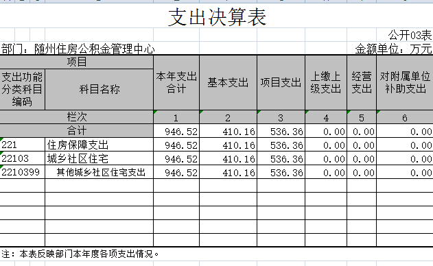 我中心支出全部為住房保障支出,共計946.52萬元,比上年的836.64萬元增加了109.88萬元,增長13.13%。主要原因是購買隨縣辦事處業(yè)務用房、裝修中心業(yè)務大廳,業(yè)務用房建設支出比上年增加129.93萬元,增長53.4%。信息化建設投入比上年增加15.05萬元,增長21.83%。