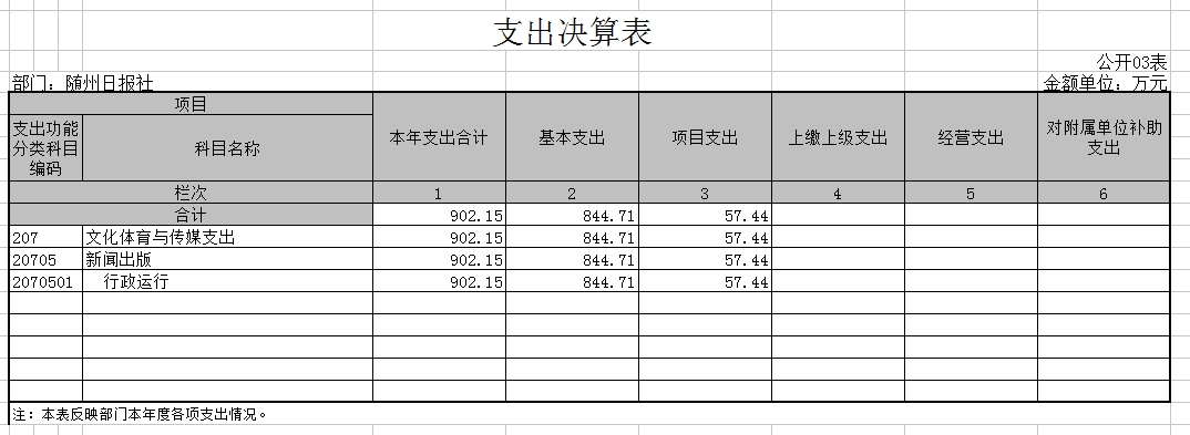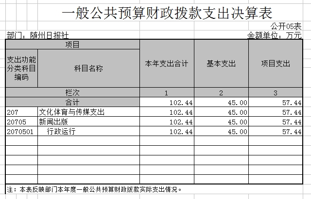 2015年,隨州日報社日常公用經費2101083.03元,比上年度減少999147.32元,降幅32.23%。其中主要有辦公費131715.96元,印刷費500215.68元,水費51749.43元,電費153775.38元,郵電費35294元,差旅費60353.5元,維護費35852元,公務接待費37585元,公務用車運行維護費152235.93元,稅金及附加費用185131.25元,其他商品和服務支出316038.40元。運行經費降低主要原因為單位嚴格執行“八項”規定,嚴控各項經費支出。運行經費來源全部為事業收入,無財政撥款收入。