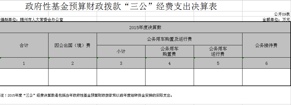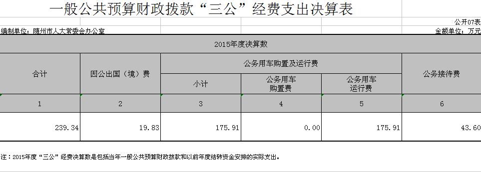 2015年市人大辦公務(wù)接待經(jīng)費決算43.6萬元,共計260余批次、2700余人次;公務(wù)用車購置與公務(wù)用車運行維護(hù)經(jīng)費決算?175.91萬元,公務(wù)用車購置數(shù)為0輛,保有量為21輛;因公出國費19.83萬元,共計4人,2團組,“三公經(jīng)費”均較上年有所減少。