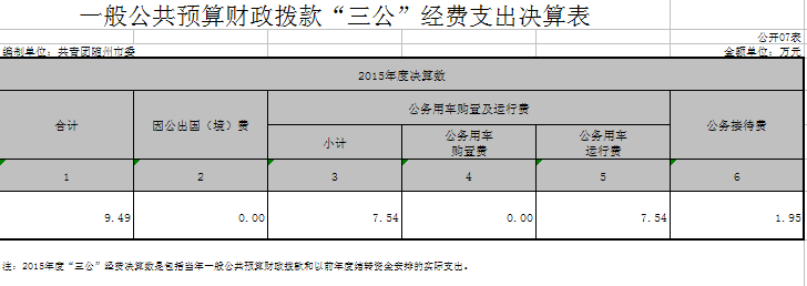 (4)2015年度團市委公務接待費1.95萬元(國內公務接待25批次300人次,無外事接待),經費開支控制在年初預算范圍內,公務接待費比上年度減少1.65萬元,主要是2015年度團市委進一步嚴格了公務活動接待。