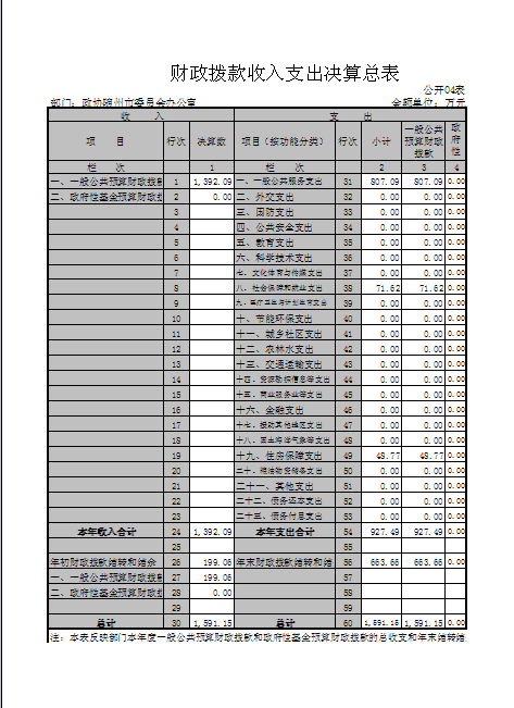 2015年收入合計1591.15萬元,其中財政撥款收入1392.09萬元,上年結轉和結余284.15萬元;支出合計927.49萬元,年末財政撥款結轉和結余663.66萬元。