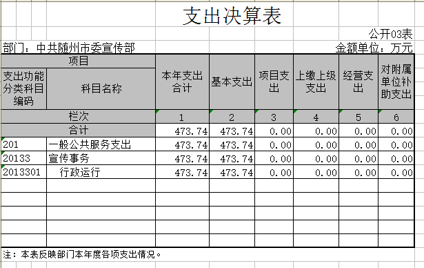 隨州市委宣傳部2015年部門決算
