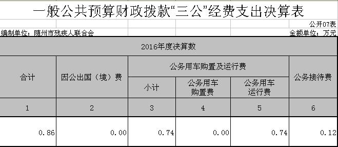 2016年財政撥款安排4.64萬元,其中因公出國(境)費0萬元,公務接待費0.39萬元,公務用車購置費0元,公車運行維護費4.25萬元。2016年,由于嚴格控制三公總量支出,效果明顯,使支出與預算略有減少,所以實際支出決算數為0.86萬元(包括公務接待費0.12萬元——全年公務接待共5批次15人,公務車運行維護0.74萬元,因公出國(境)費用為0元,因沒有人員出國(境)所以沒有產生費用,機關僅有一臺公務用車,且已于4月份上繳,并且本年度未購置新車,所以購置費為0元);2016年三公經費安排比2015年三公經費安排 萬元減少了1.55萬元,主要是因為2016年4月份公車上繳,所以5-12月不會產生公務車維護費。
