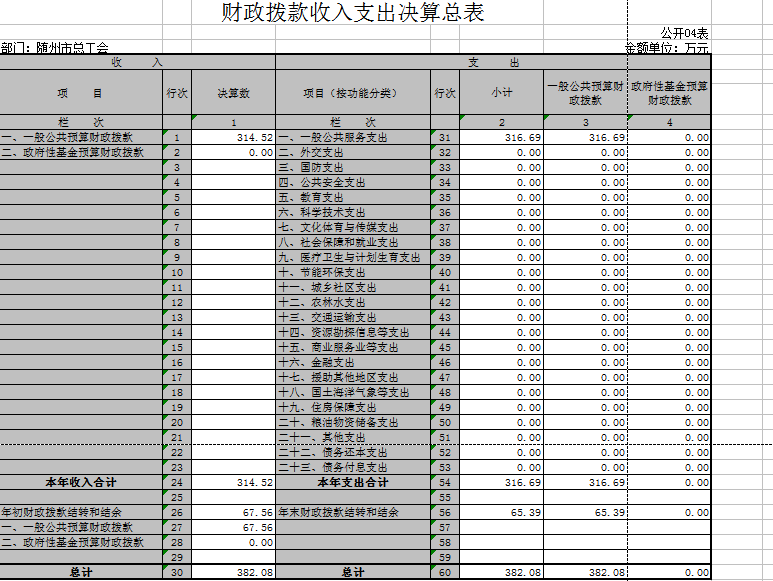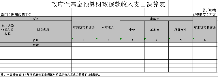 隨州市總工會2016年無政府性基金預算收支,08表、09表為空表。
