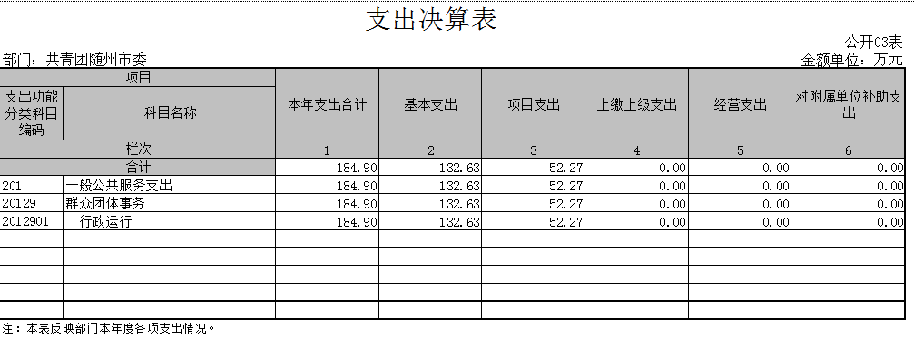 2016年團市委收入預算總額為224.63萬元,均為財政撥款(補助)收入。支出總額為184.9萬元,其中:基本支出132.63萬元,項目支出52.27萬元。