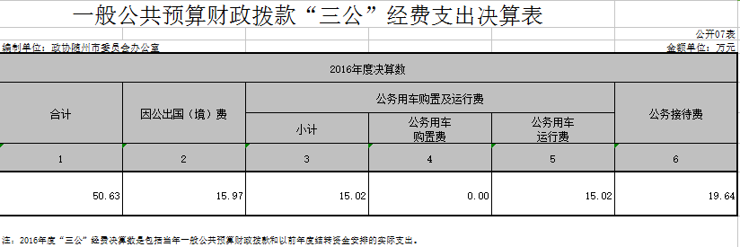 12、“三公”經費:納入財政預決算管理的“三公”經費,是指各部門用財政撥款安排的因公出國(境)費、公務用車購置及運行費和公務接待費。其中,因公出國(境)費反映單位公務出國(境)的國際旅費、國外城市間交通費、住宿費、伙食費、培訓費、公雜費等支出;公務用車購置及運行費反映單位公務用車車輛購置支出(含車輛購置稅)及租用費、燃料費、維修費、過路過橋費、保險費、安全獎勵費用等支出;公務接待費反映單位按規定開支的各類公務接待(含外賓接待)支出。