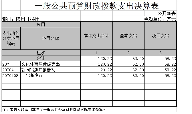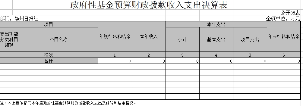 隨州日報社因無政府性基金,所以“政府性基金預算財政撥款支出決算表”無數據。