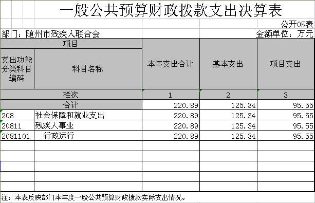 3、項(xiàng)目支出(2089901項(xiàng)):指在基本支出之外為完成特定行政任務(wù)和事業(yè)發(fā)展目標(biāo)所發(fā)生的支出,包括殘疾人康復(fù)、宣傳文體、教育就業(yè)、維權(quán)信訪、組織聯(lián)絡(luò)等項(xiàng)目所產(chǎn)生的支出。