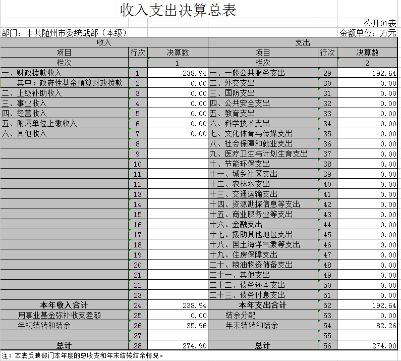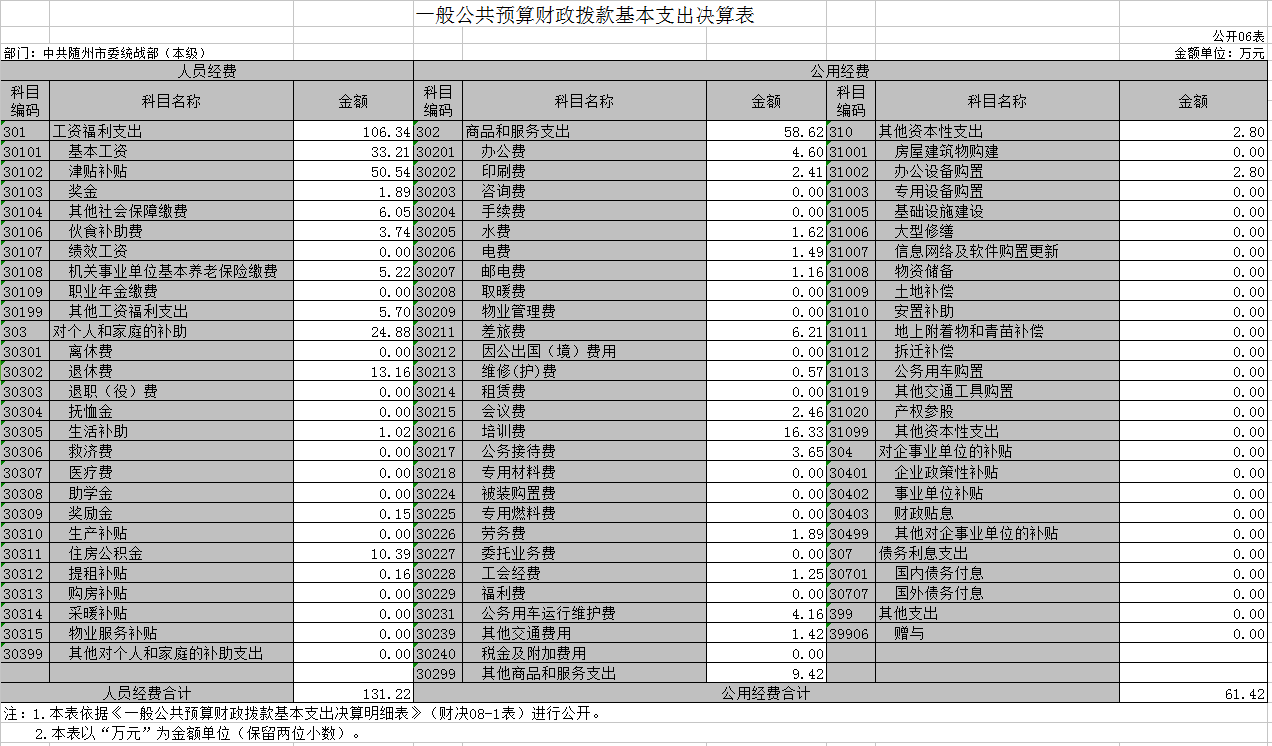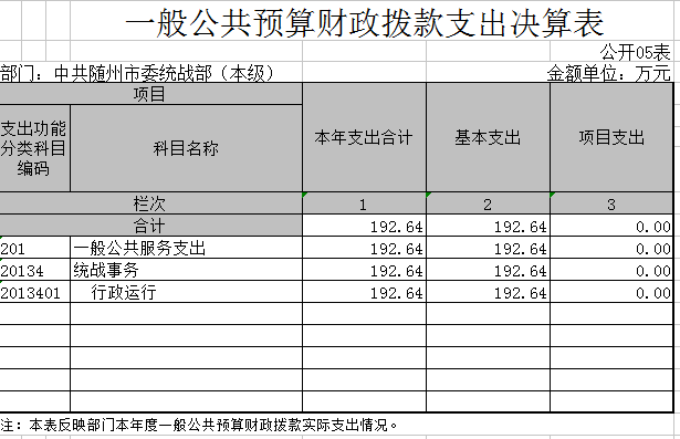 中共隨州市委統一戰線工作部2017年度部門決算公開
