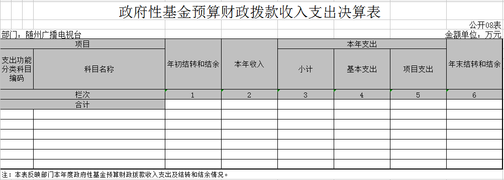 隨州廣播電視臺系統匯總及本級2017年無政府性基金預算收支,08表為空表,和上年同比無增減。