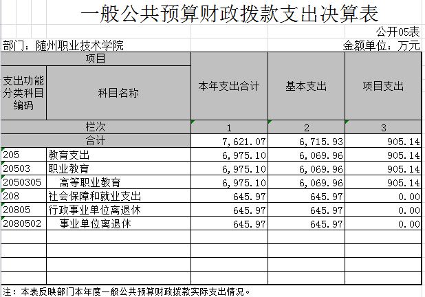 ??5.一般公共預算財政撥款支出決算表(公開05表)