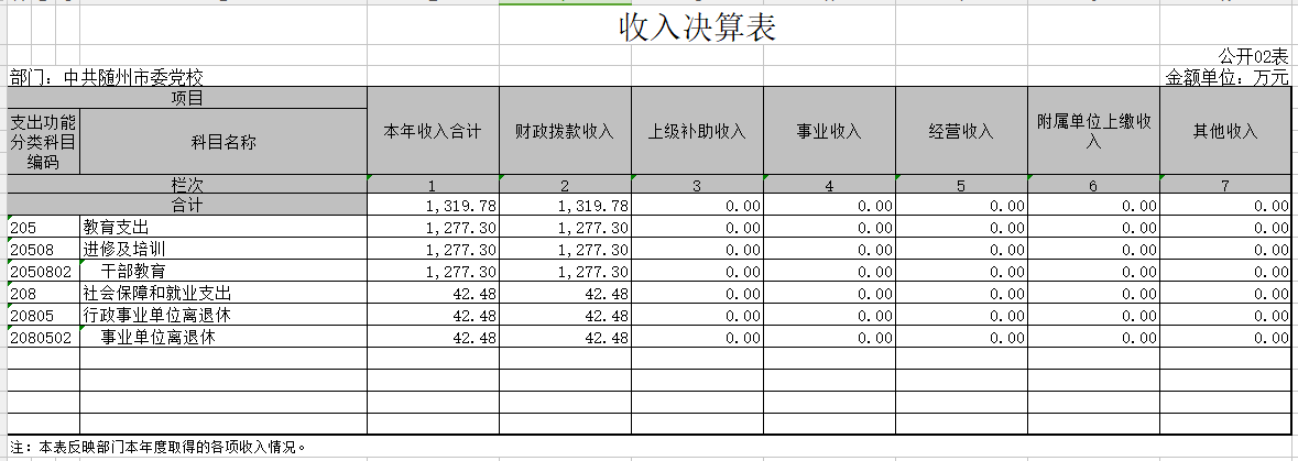 隨州市委黨校是全額撥款的參照公務員法管理事業單位,內設辦公室、基層黨校科、政工科、教研室、市情研究室、教務科、學員組織科、公務員培訓科、函授部、總務科、隨縣分校、網絡管理科12個科室,無下設二級單位。2017年末,單位編制42人,在職人員41人,退休人員24人,較上年度在職人員37人,退休人員24人,變動情況為新招錄6人,退休并死亡1人,調走1人。
