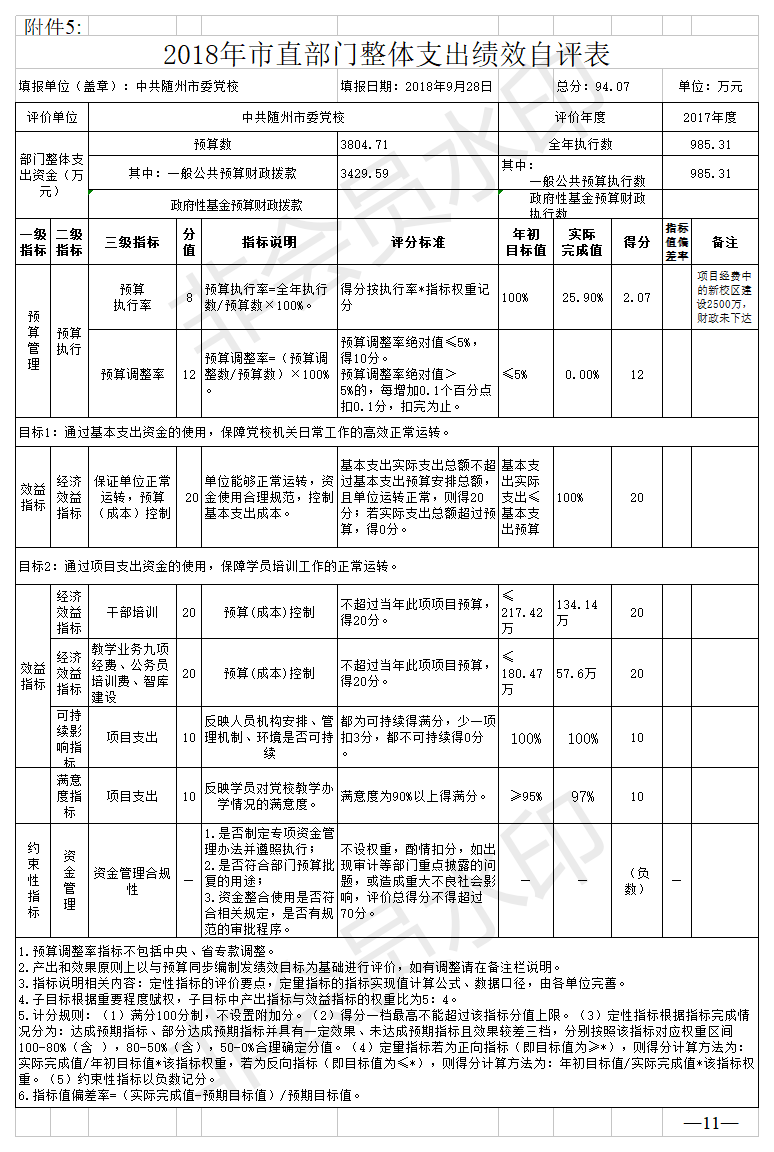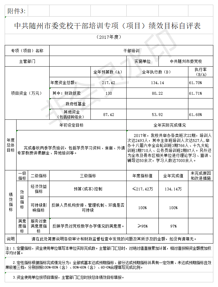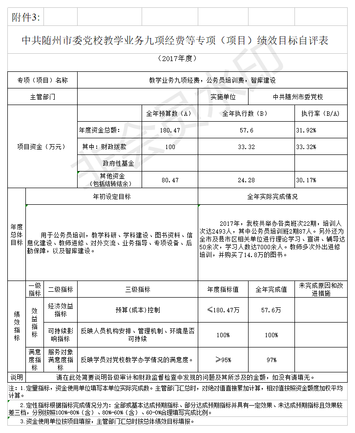 市委黨校部門整體支出績效自評表一張以及項目績效目標自評表兩張。隨州市委黨校績效評價報告.doc附件