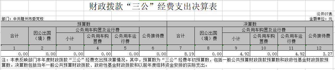 2017年“三公”經費支出8.19萬元,比年初預算數2.5萬元多5.69萬元,增加227.6%,增加原因主要是年初只預算了公務接待費的2.5萬元,沒有預算公務用車運行費,又因黨校培訓外請教授次數和人數增加,所以導致“三公”經費超出預算。