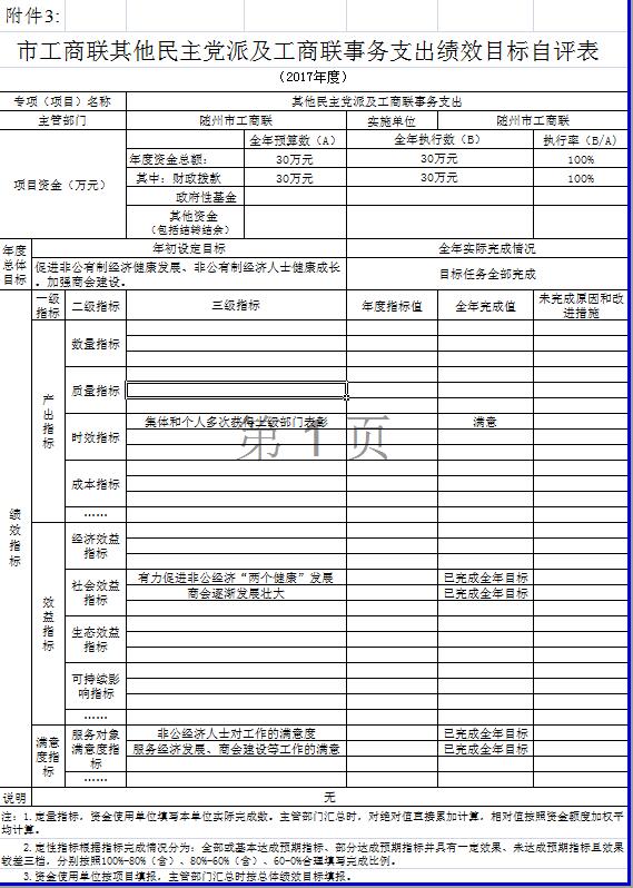?附件3:《隨州市工商聯(lián)政治特別費(fèi)績(jī)效目標(biāo)自評(píng)表》