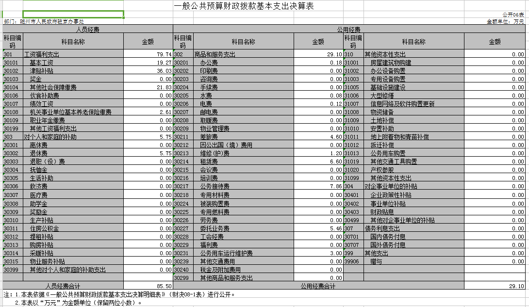 3.基本支出:指為保障機構正常運轉、完成日常工作任務而發生的人員支出和公用支出。