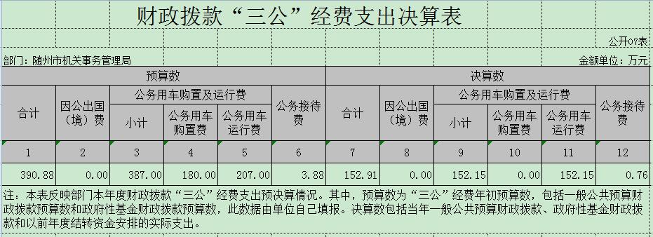 納入本套部門決算匯編范圍單位共2個,包括市機關事務管理局和二級單位隨州市市直機關綜合執法應急用車保障中心(2個單位填報一套決算)。