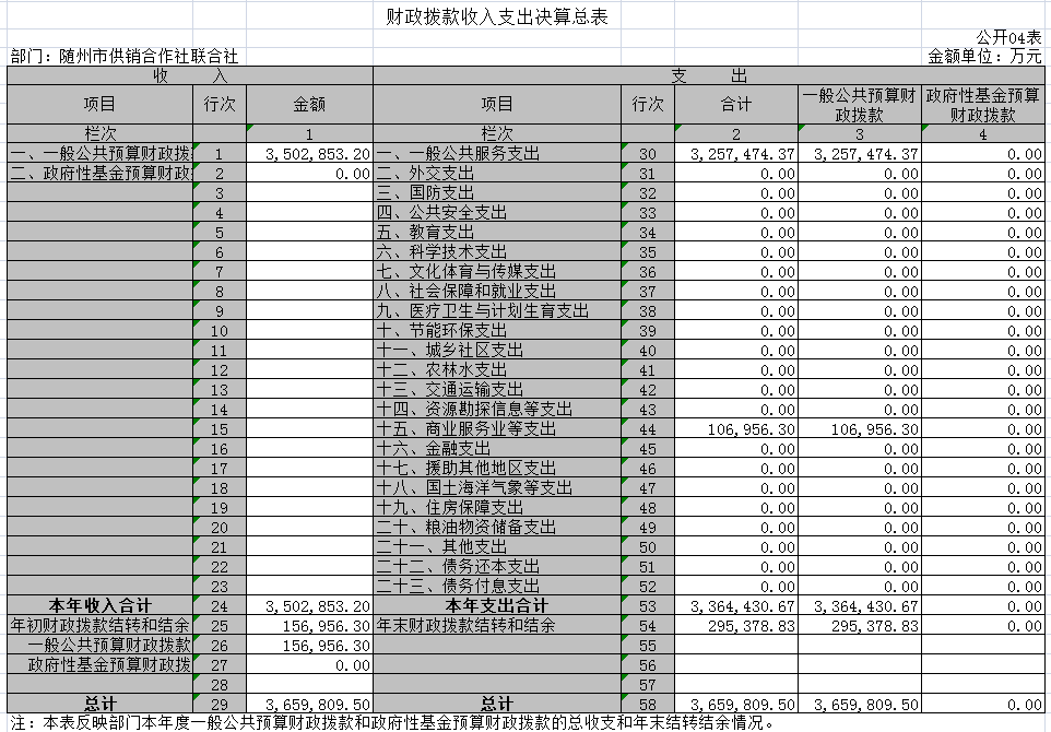 市供銷合作社聯(lián)合社機(jī)關(guān)全額撥款事業(yè)編制為15名。其中:主任1名,副主任2名,監(jiān)事會(huì)主任1名,總會(huì)計(jì)師1名;正科級(jí)領(lǐng)導(dǎo)職數(shù)6名(含監(jiān)事會(huì)辦公室主任1名)。目前在崗在職人員13人,主任1人,副主任2人,監(jiān)事會(huì)主任1人,工會(huì)主席1人,正副科級(jí)7人,科員1 人。 第二部分 2018年部門決算情況說(shuō)明