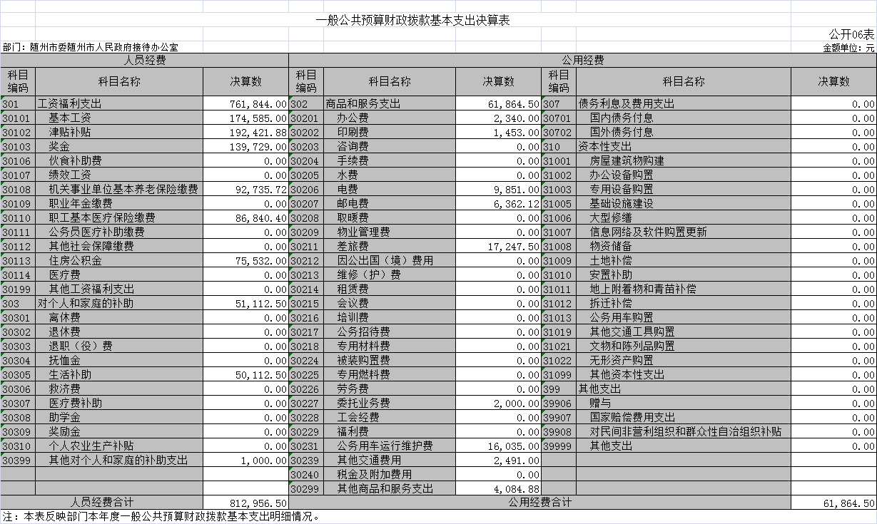 6.基本支出:指為保障機(jī)構(gòu)正常運(yùn)轉(zhuǎn)、完成日常工作任務(wù)而發(fā)生的人員支出(包括基本工資、津貼補(bǔ)貼等)和公用支出(包括辦公費(fèi)、水電費(fèi)、郵電費(fèi)、交通費(fèi)、差旅費(fèi)等)。