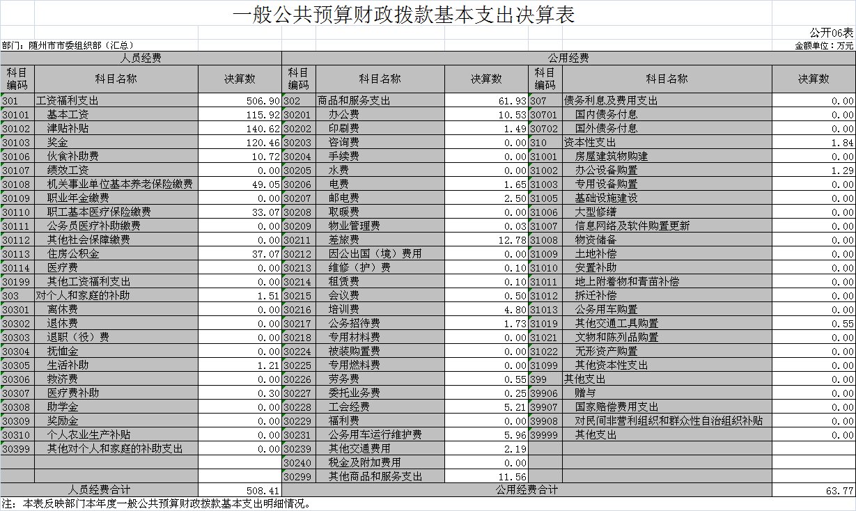 ??六、一般公共預算財政撥款基本支出決算表