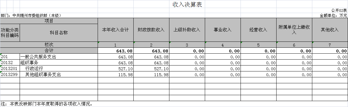 ??部門(本級)財政撥款收入643.08萬元,占100%。