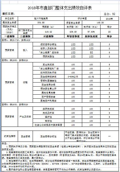 根據預算績效管理要求,我單位組織對2018年度市本級預算部門的整體支出進行績效自評,共涉及項目3個,資金182.00萬元,占一般公共預算項目支出總額的76.58%,從評價情況來看,市檔案局總體情況良好,預算編制質量較好,預算信息公開符合要求;預算執行進度良好。