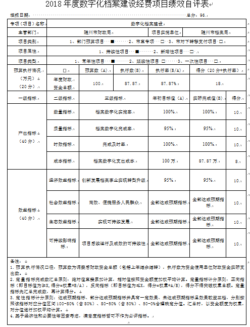 附2、2018年度隨州市檔案局數字化檔案建設經費項目支出績效自評表