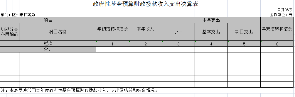 單位無政府性基金財政撥款收入和支出,故政府性基金預算財政撥款收入支出決算表(公開08表)無數據。