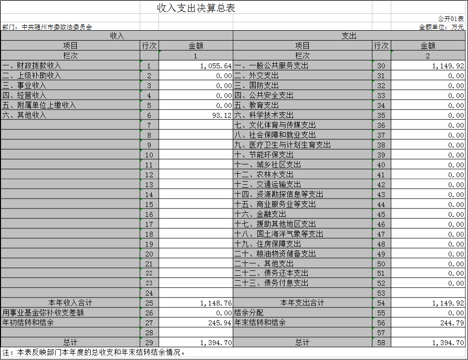 2018年度單位收入1148.76萬元,其中:財政撥款收入1055.64萬元,其他收入93.12萬元。同比2017年增加554.73萬元,增長93.38%,主要原因是:新增政法機關信息化項目建設經費財政撥款。2018年度單位共支出1149.92萬元,其中:基本支出360.70萬元,項目支出789.22萬元。同比2017年增加614.14萬元,增長114.63%;但比年初預算減少251.35萬元,下降17.93%,主要原因是:單位嚴格落實“八項規定”,堅持厲行節約,進一步規范相關經費,特別是規范項目經費的使用管理,不斷提高了經費使用效益。