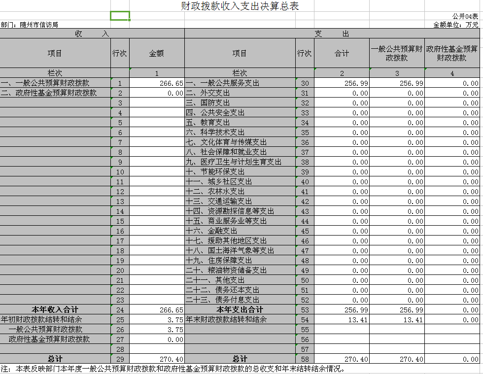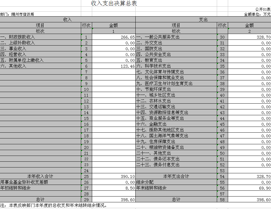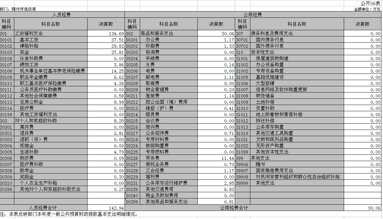 第三部分隨州市信訪局2018年度部門決算表