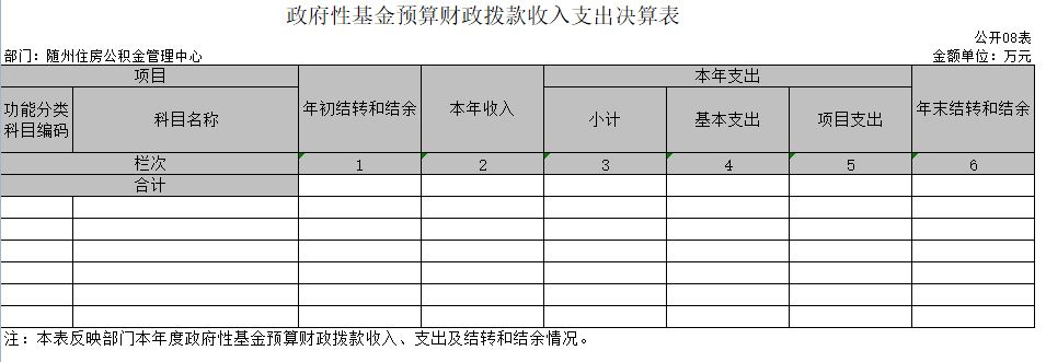 8、政府性基金預(yù)算財政撥款收入支出決算表