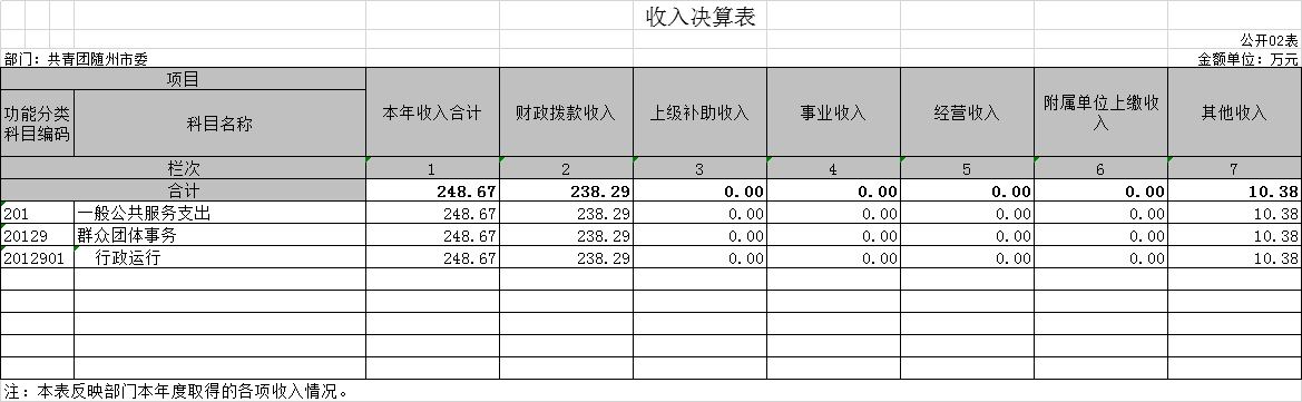第四部分 共青團隨州市委2019年部門決算表