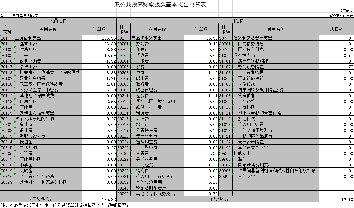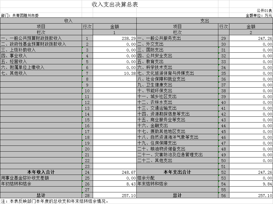 第四部分 ?共青團隨州市委2019年部門決算表
