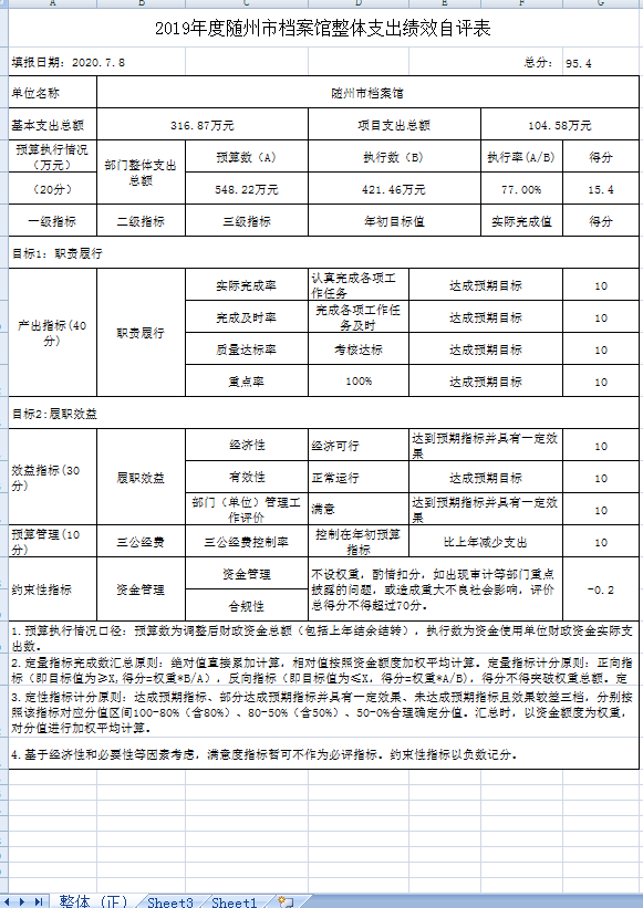 附1、2019年度隨州市檔案館整體支出績效自評表