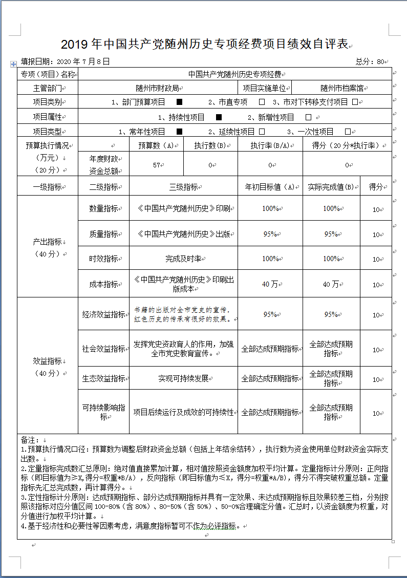 附2、2019年度中國共產黨隨州歷史專項經費項目支出績效自評表
