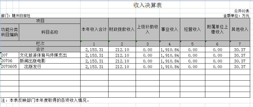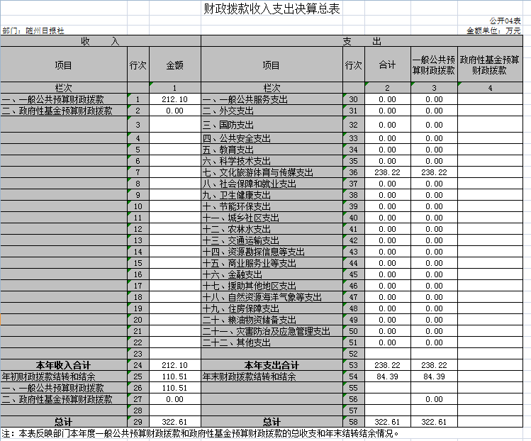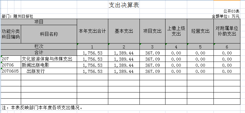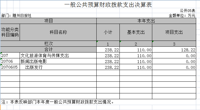 隨州日報社因無政府性基金,所以“政府性基金預算財政撥款支出決算表”無數據。