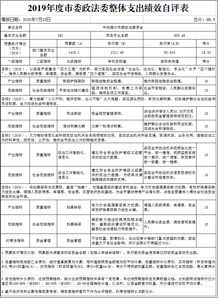 附件:2019年度市委政法委整體支出績效自評表