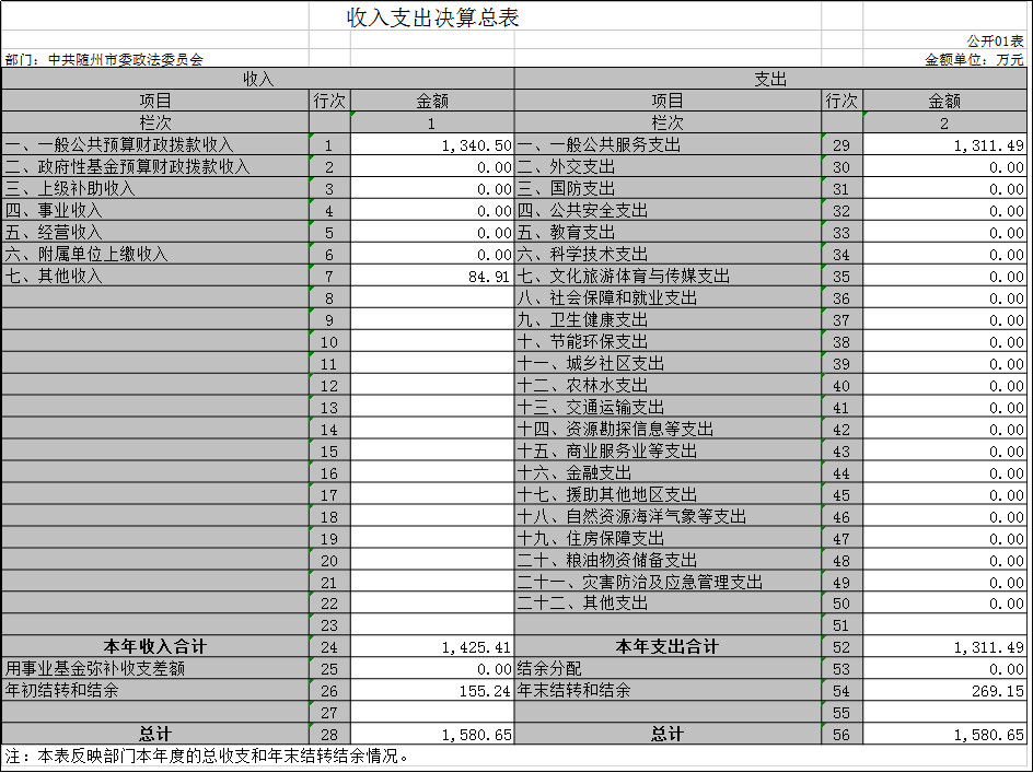 隨州市委政法委2019年部門決算
