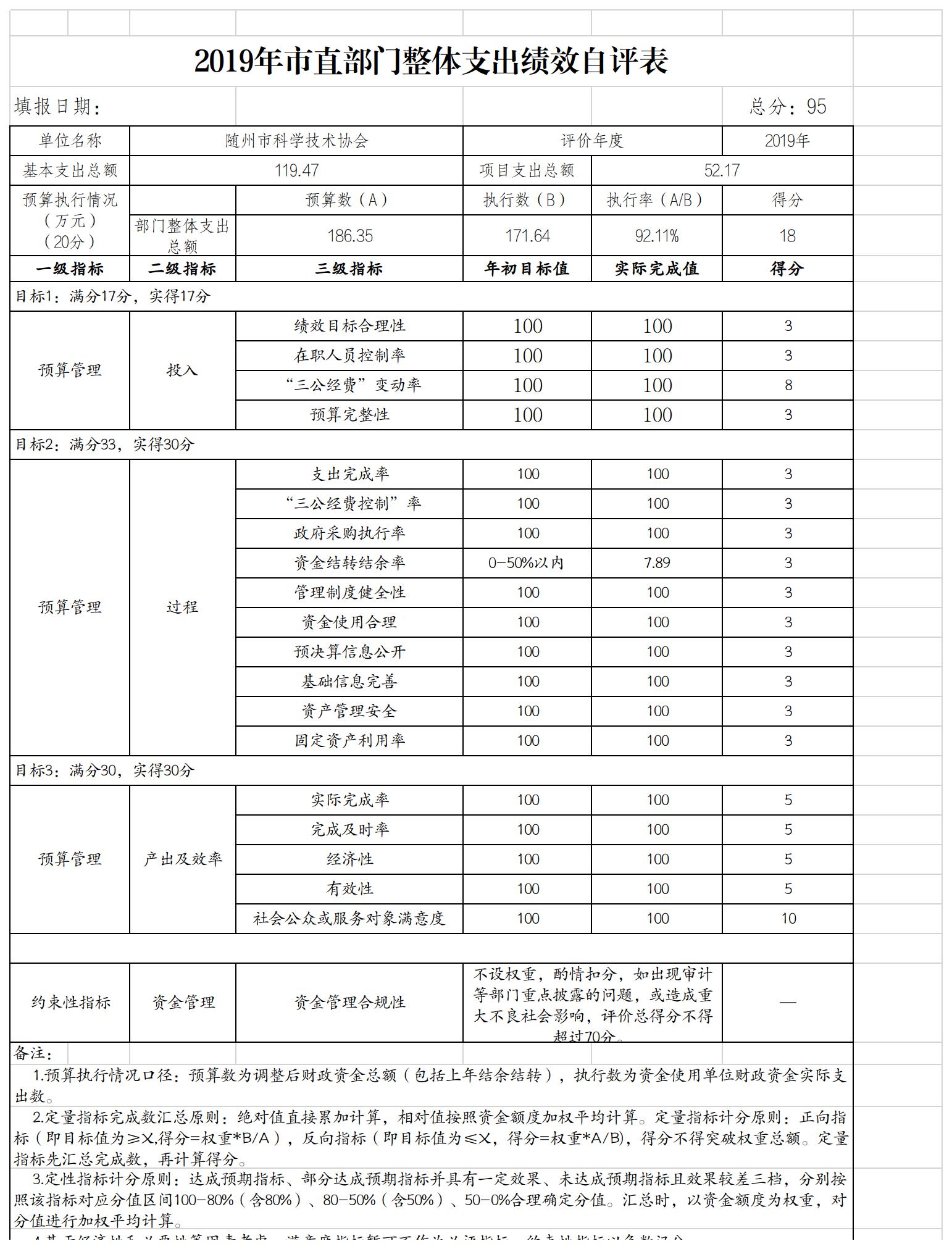 附1、2019年度隨州市科學技術(shù)協(xié)會整體支出績效自評表