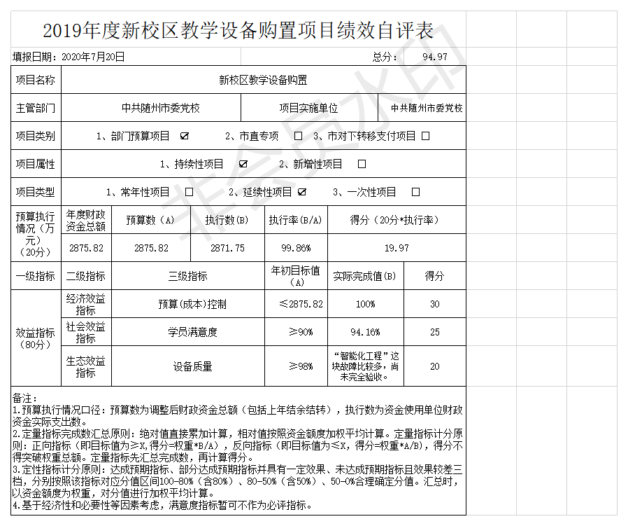 (八)關于2019年度預算績效情況的說明,以及市委黨校部門整體支出績效自評表一張以及項目績效目標自評表三張,隨州市委黨校績效評價報告.doc附件