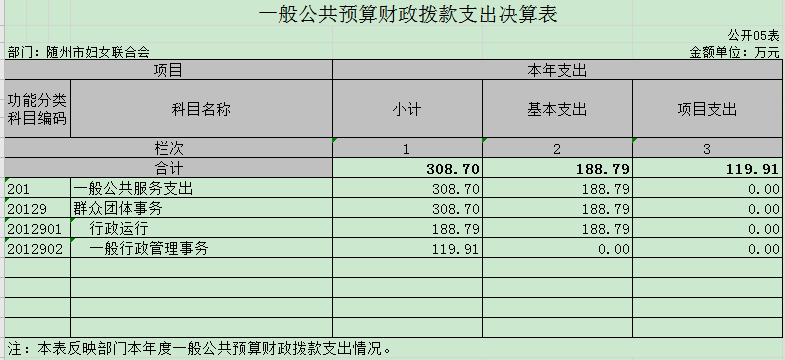 隨州市婦女聯合會2019年部門決算情況