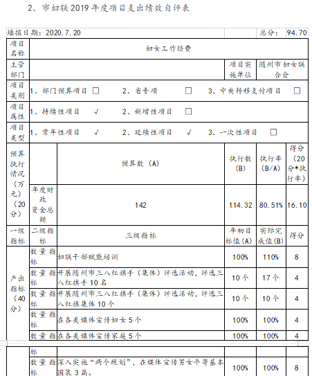 八、市婦聯2019年項目支出績效自評表