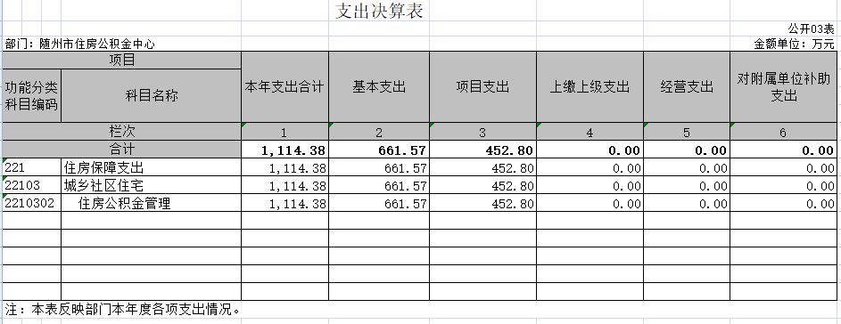 2020年支出1114.38萬元,全部為住房保障支出,比上年1115.29萬元減少0.91萬元,減少0.08%。減少的主要原因是綜合服務平臺及信息管理系統升級開發費用較上年有所減少。