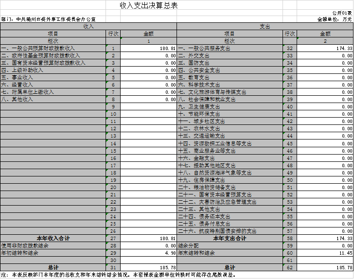 本部門2020年度收支決算總計185.78萬元,由于我單位2019年機構改革新組建單位,無2019年決算數據,無上年對比數。