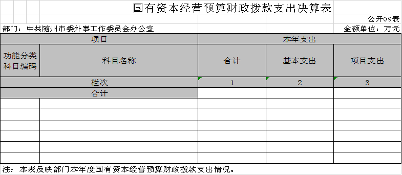 ?九?、國有資本經營預算財政撥款收入支出決算表(公開表09)