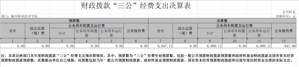 7.財(cái)政撥款“三公”經(jīng)費(fèi)支出決算表(公開07表)