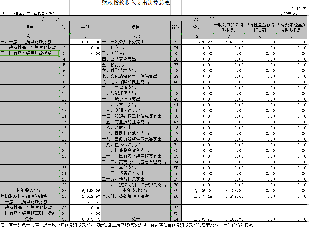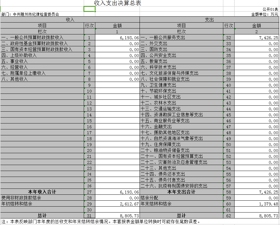 第三部分? 隨州市紀(jì)委監(jiān)委2020年決算表