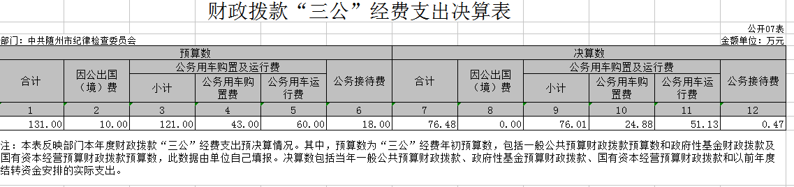 七、財(cái)政撥款“三公”經(jīng)費(fèi)支出決算表